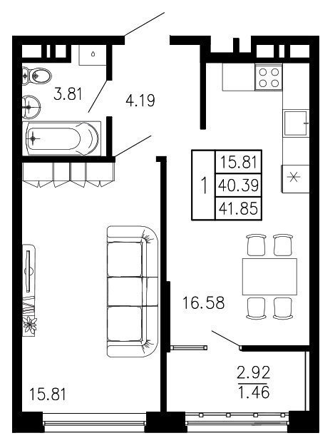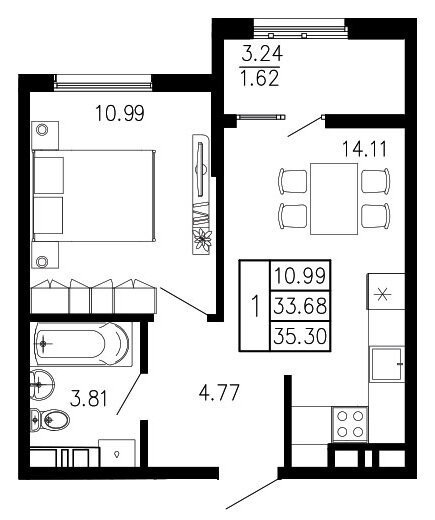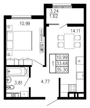 Площадь от 35.3 м2