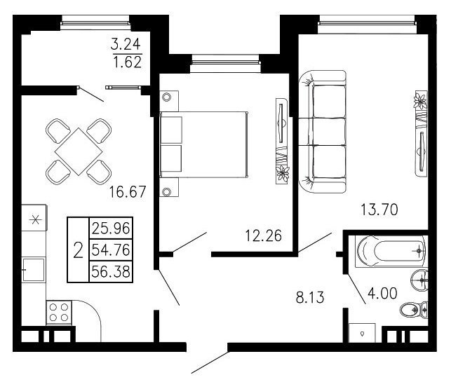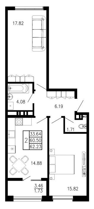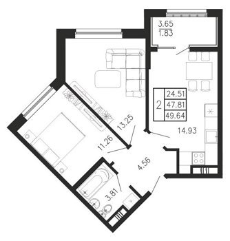Площадь от 49.64 м2