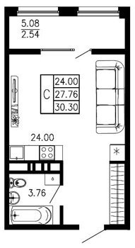 Площадь от 30.3 м2